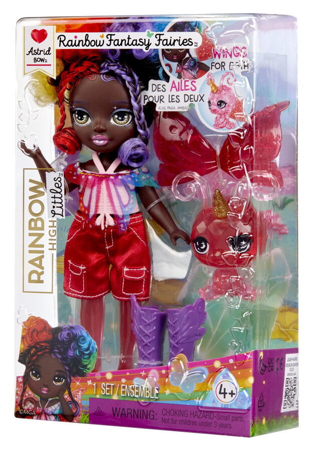 Obsah balení: • 1 panenka Astrid s dlouhými česatelnými vlásky a kompletním outfitem • 1 pár křídel • 1 mazlíček • 1 pár bot