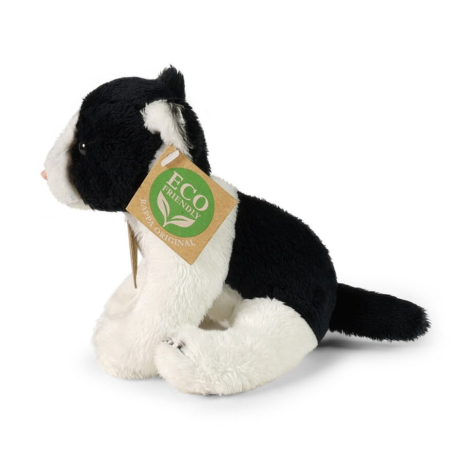 Rappa Plyšová kočka sedící černo-bílá 14 cm ECO-FRIENDLY