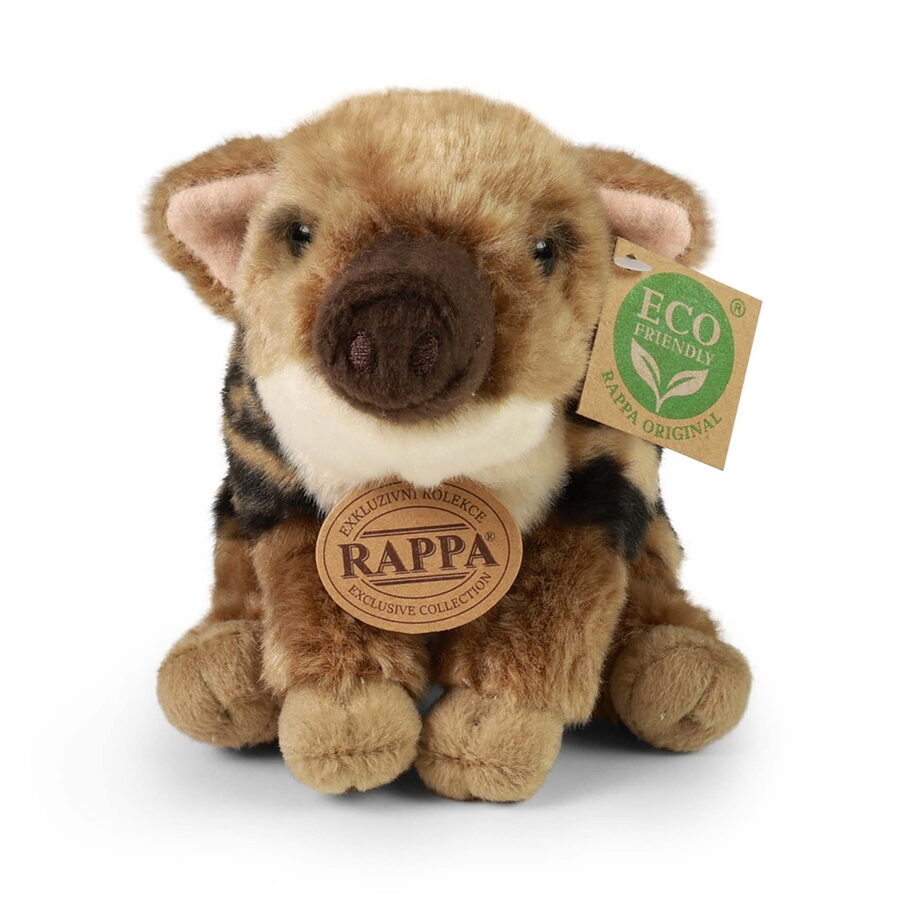 Plyšové mládě prase divoké sedící o velikosti 20 cm je ručně ušité z vysoce kvalitního jemného plyše, a díky tomu vypadá jako živé. Tento plyšový kousek je ideálním dárkem pro všechny milovníky heboučkých plyšáků. Je součástí exkluzivní kolekce plyšových hraček značky RAPPA. Hlavní vlastnosti: realistické zvířátkoruční zpracovánívysoce kvalitní plyšECO-FRIENDLY výplň Co to vlastně ECO‑FRIENDLY znamená? Výplň plyšové hračky je vyrobena z recyklovaných PET lahví. Tento materiál je zcela bezpečný, na omak nerozeznatelný od standardní výplně a plně atestovaný pro bezpečnost i těch nejmenších. Rozhodli jsme se jít zelenou cestou co nejméně zatěžující životní prostředí – cestou ECO‑FRIENDLY.