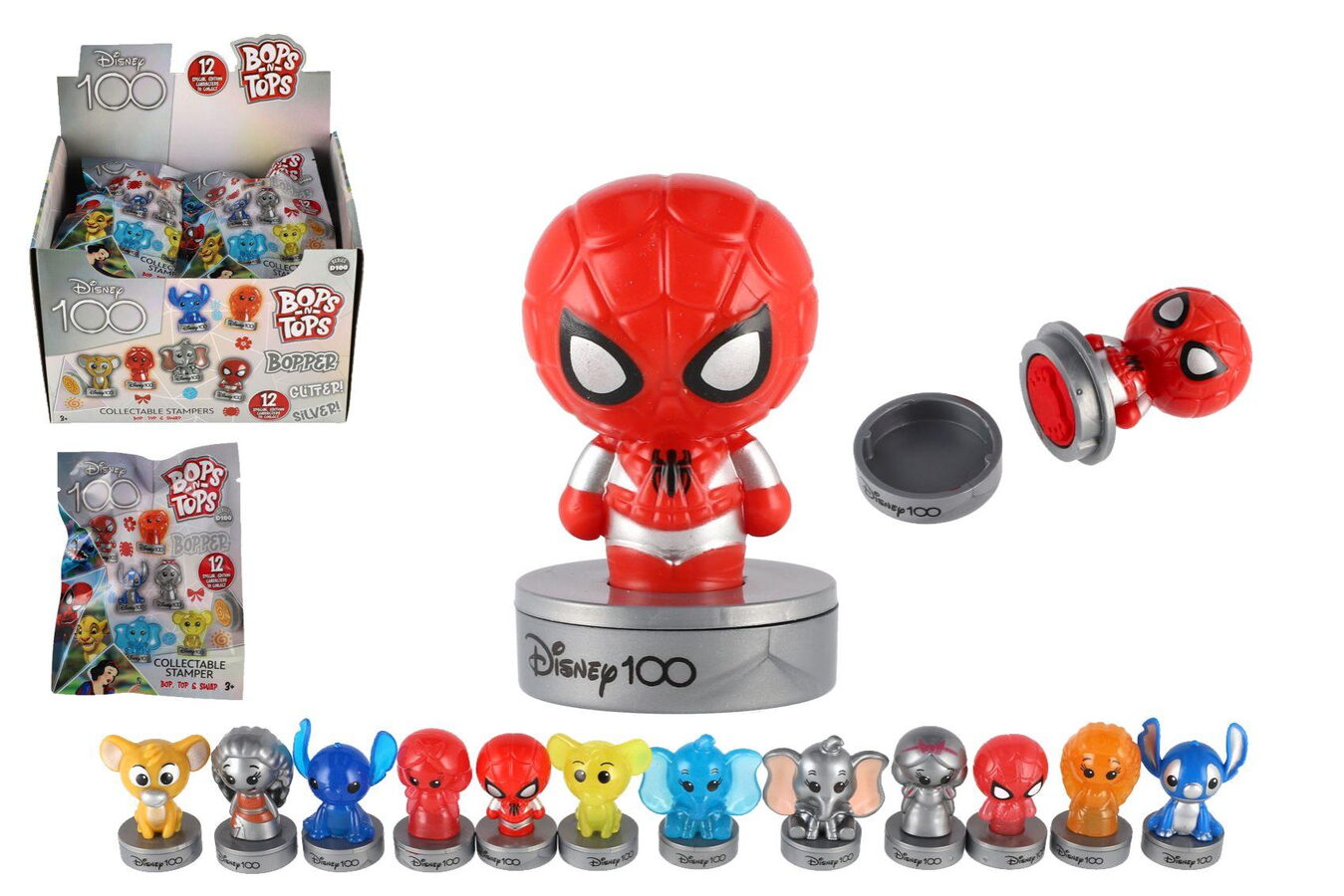 Razítka Bops/Tops v licenci 100 Disney -posbírej je všechny, obsahuje 12 exclusivních razítek – třpytivá, stříbrná.