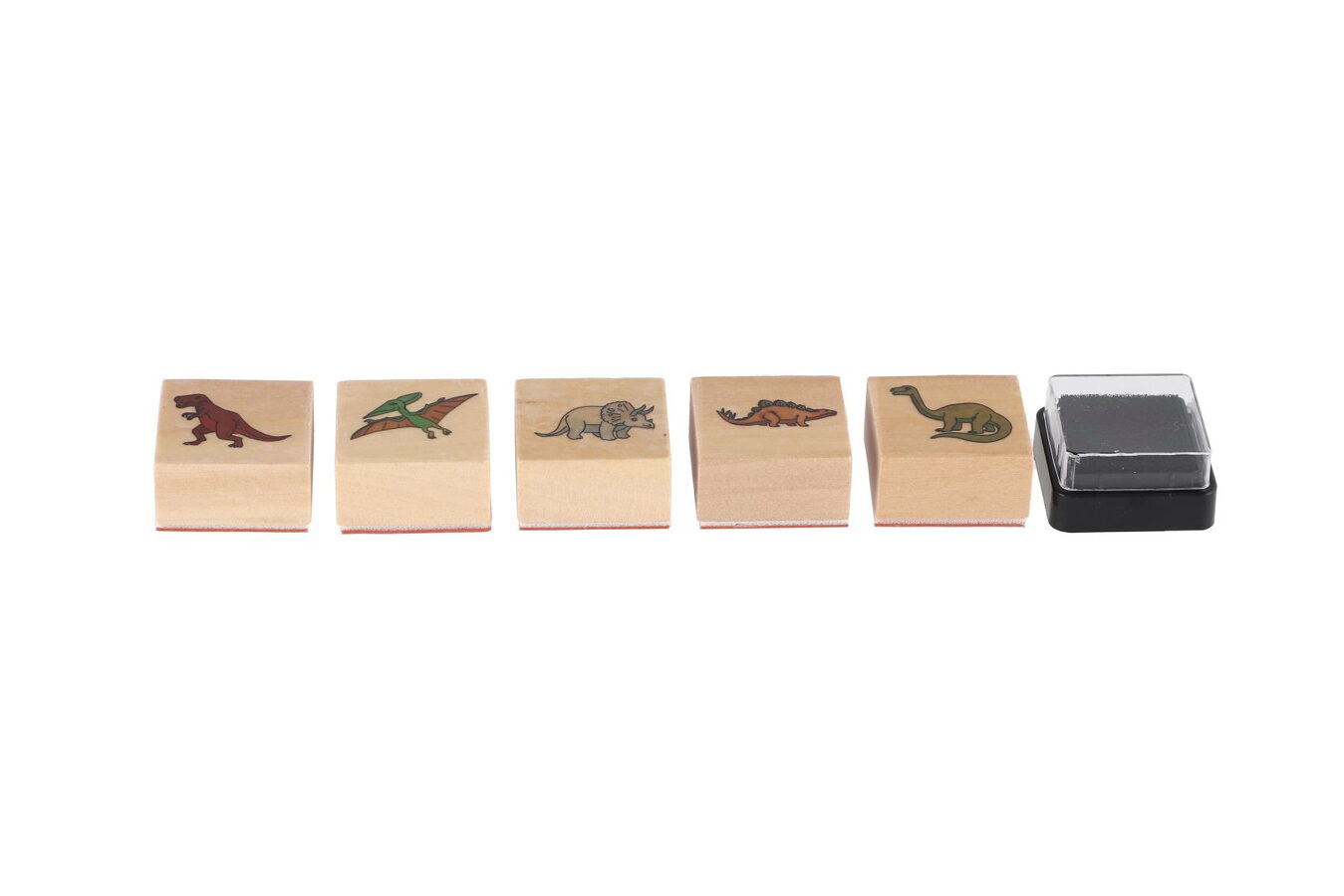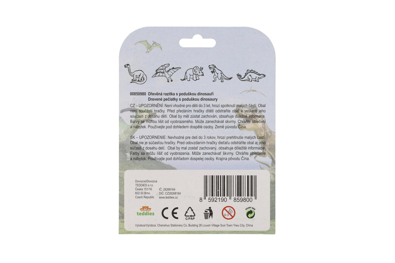 Razítka dřevěná 5+1 s poduškou dinosauři 3x3cm na kartě