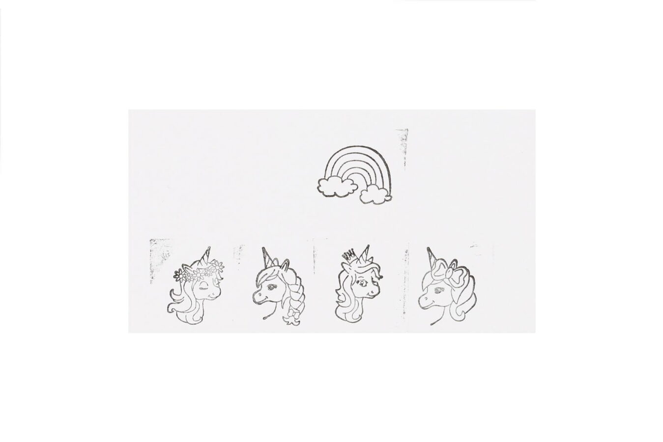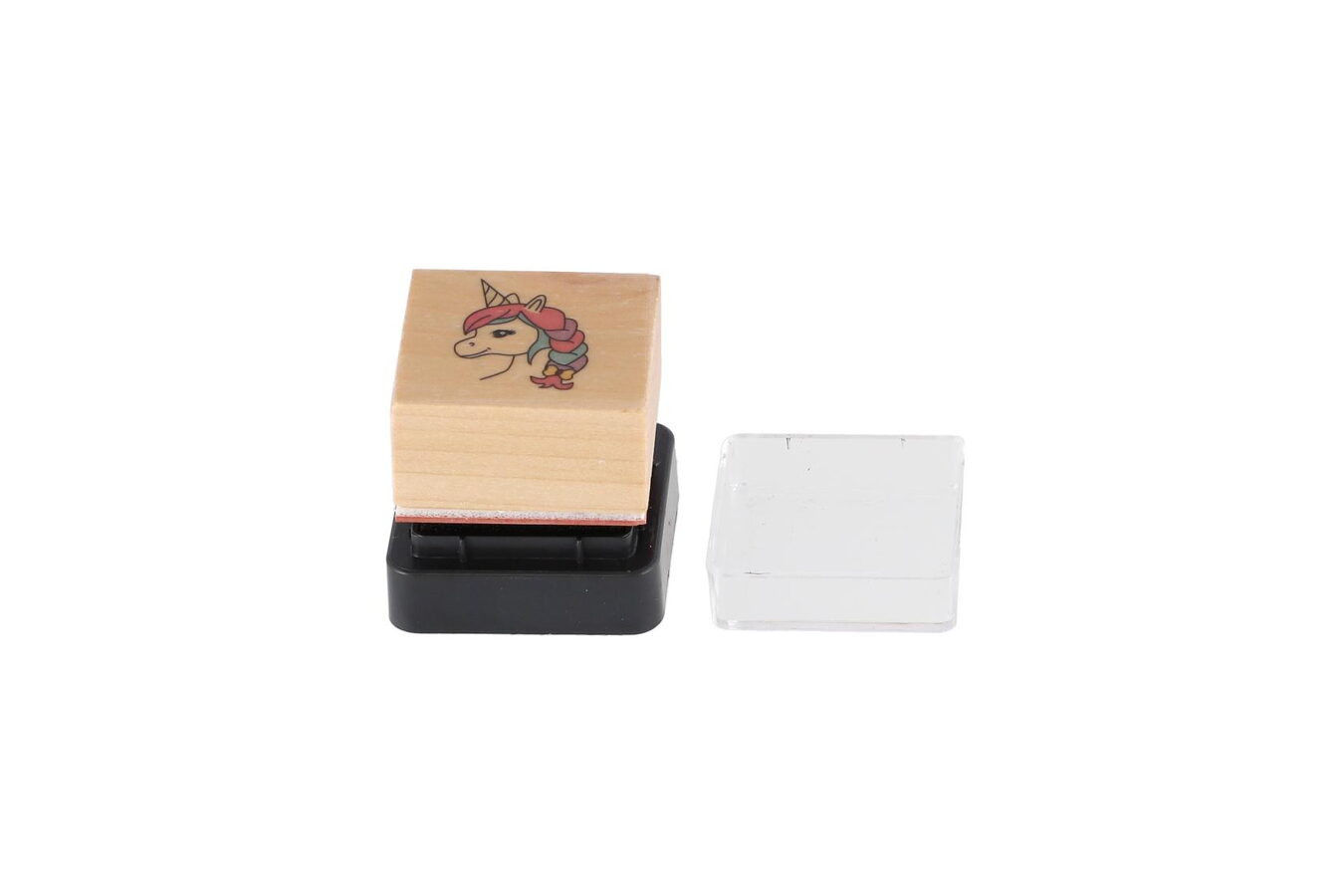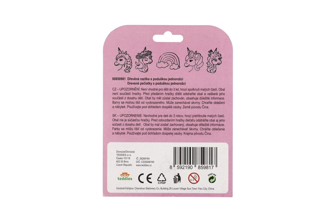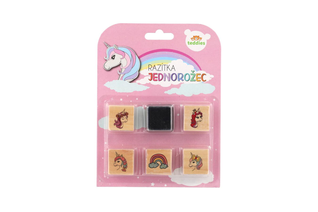 Razítka dřevěná 5+1 s poduškou jednorožci 3x3cm na kartě