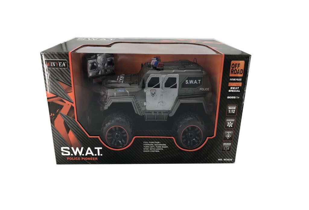 Funkce a vlastnosti: Maximální rychlost: 10 km/h – pro rychlé zásahy Plné funkce ovládání – dopředu, dozadu, zatáčení doprava a doleva Světelné efekty – stiskni tlačítko a sleduj, jak se mění barvy světel Frekvence: 27 MHz s dosahem 40 m pro plynulé ovládání