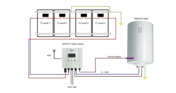 Regulátor ANTIK Solartech využijete u domácích fotovoltaických sestav určených pro solární ohřev vody. Fotovoltaické panely namontujete na střechu, připojíte k nim ANTIK PV Water Heater a k němu připojíte svůj bojler na teplou vodu. Nepotřebujete k tomu žádné speciální úpravy elektroinstalace nebo povolení od distributora elektřiny.