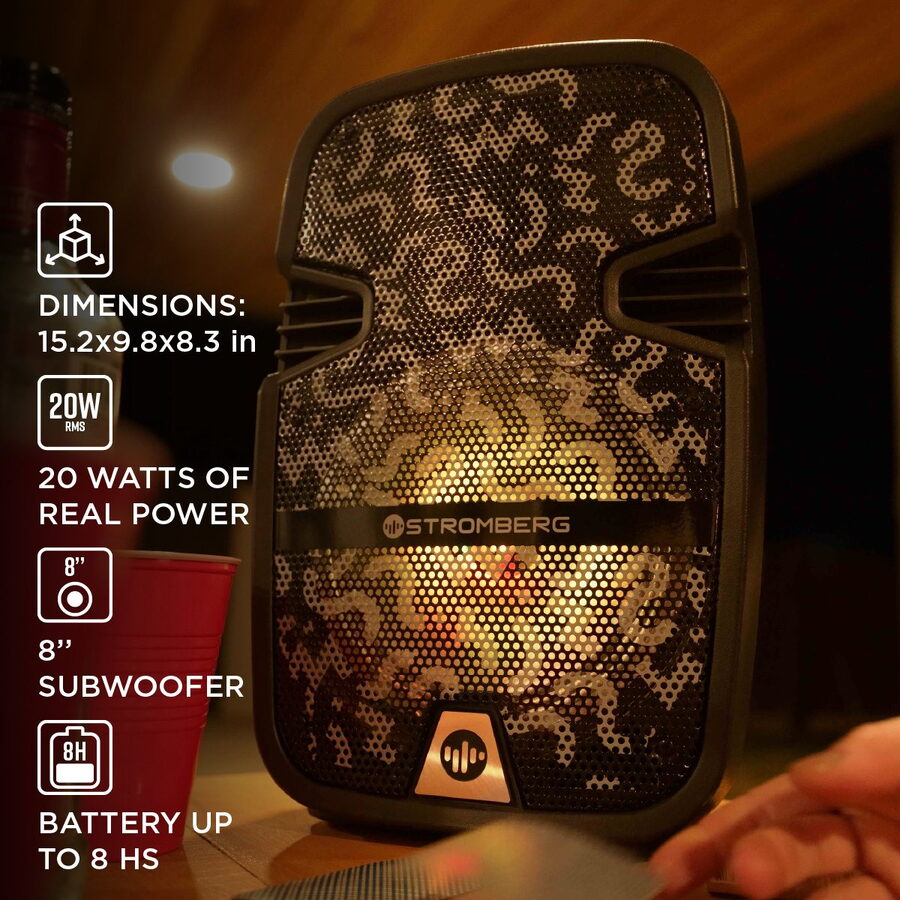 Reproduktor Stromberg DIGITY-2 – silný zvuk, chytré funkce a kompaktní tělo. Díky výkonu 20 W RMS a 8" reproduktoru přináší čistý a silný zvuk, ať už jste doma nebo venku. Vestavěná baterie 1500 mAh zajistí až 8 hodin přehrávání na jedno nabití bez přerušení.