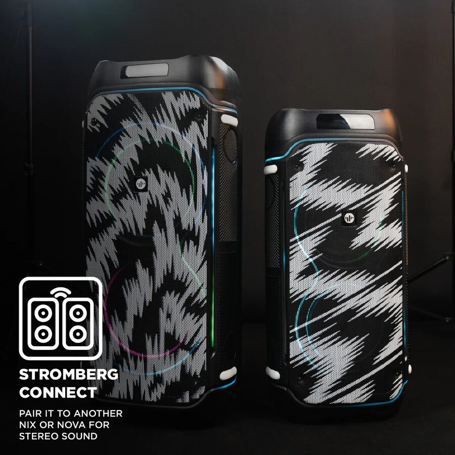 Stromberg NIX kombinuje dva 8" subwoofery a jeden 3" tweeter pro silný zvukový výstup. Se svou hmotností 13 kg se reproduktor řadí mezi robustní kousky, ale díky úchytům je i snadno přenosný. Ideální pro karaoke, večírky, akce i prezentace. Podporuje TWS propojení s dalšími reproduktory a s IPX LED podsvícením vytvoříte perfektní vizuální i zvukový zážitek.