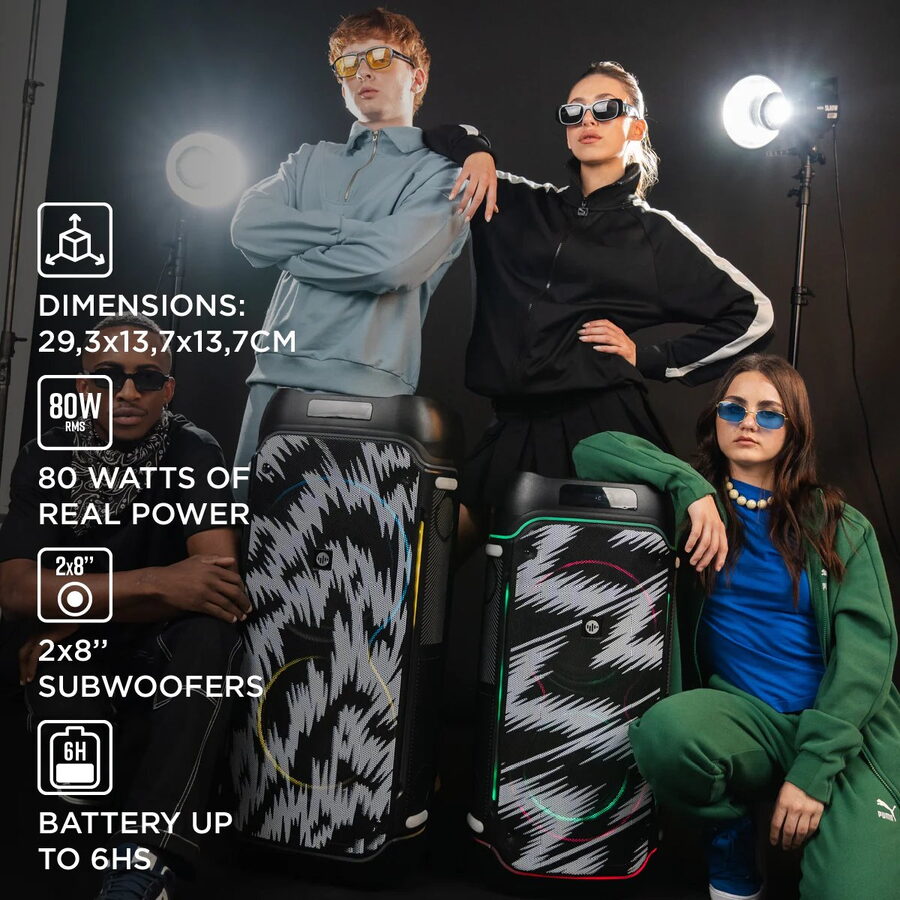 Se dvěma 10" subwoofery a jedním 3" tweeterem nabídne NOVA působivý zvukový výkon, který ozvučí i větší prostor. Navzdory hmotnosti 17 kg je díky úchytům snadno přenositelný. Skvělý pro karaoke, večírky, firemní akce i prezentace. TWS technologie umožní propojení s další jednotkou pro skutečný stereo zážitek.