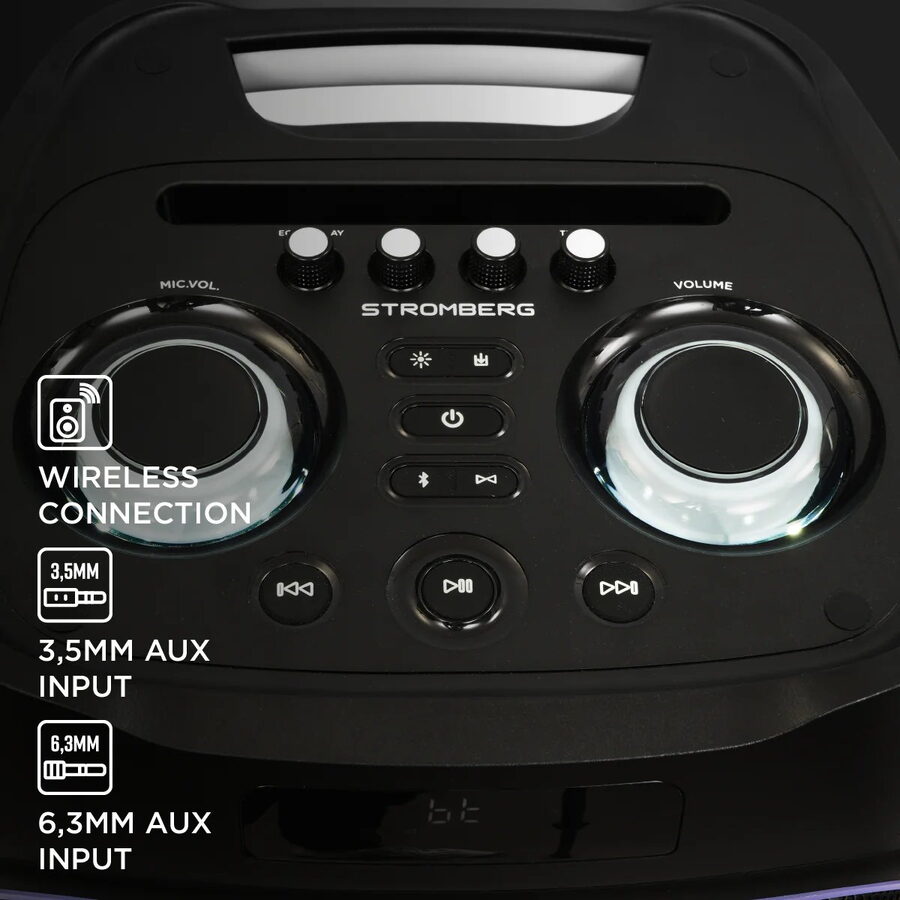 Stromberg NOVA – nejvýkonnější společník na každou párty. Tento Bluetooth reproduktor s výkonem 100 W nabídne nejen silný zvuk, ale i RGB LED podsvícení a digitální ekvalizér pro dokonalý audiovizuální zážitek. Díky technologii Stromberg Connect snadno propojíte další jednotku a vytvoříte stereo efekt, který zaplní každý prostor.