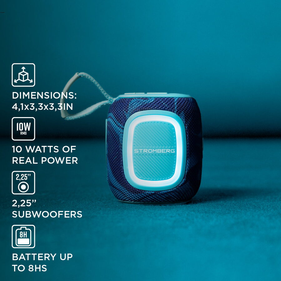 S hmotností pouze 440 g a rozměry 85 × 105 × 85 mm se Stromberg SPARK vejde do každího batohu. Jeho robustní tělo s IPX5 odolností z něj dělá spolehlivého společníka pro venkovní dobrodružství. LED podsvícení zajistí vizuální efekt a funkce True Wireless Stereo umožní propojení s dalším reproduktorem pro větší zvukový prostor.