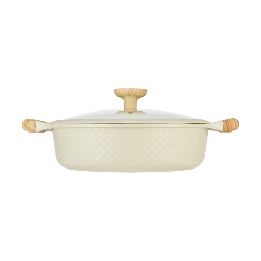Tlakově litý hliník je ideálním materiálem pro kuchyňské nádobí díky své vynikající tepelné vodivosti a odolnosti. Speciální výrobní proces mu dodává silnější stěny i dno oproti lisovanému nebo kovanému hliníku. Díky tomu se nádobí zahřívá rovnoměrně, udržuje stabilní teplotu a přispívá k lepší kvalitě i chuti připravovaných pokrmů. Je robustnější a těžší než jiné typy hliníkového nádobí a zároveň je odolné vůči deformacím.