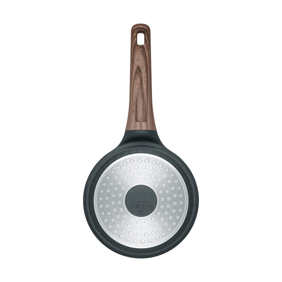 Rukojeti s povrchovou úpravou Soft Touch v designu dřeva nabízejí pohodlný a neklouzavý úchop. Zůstávají chladné na dotek a umožňují bezpečnou manipulaci i při vyšších teplotách. Pánve a kastroly jsou navíc vybaveny praktickým očkem na zavěšení, takže je můžete snadno uložit na háček, mít vždy po ruce, a přitom udržet kuchyni přehlednou a uklizenou.