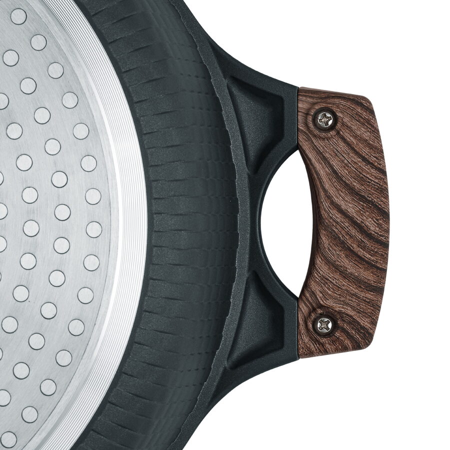 - Ergonomické rukojeti Soft Touch s dekorem dřeva