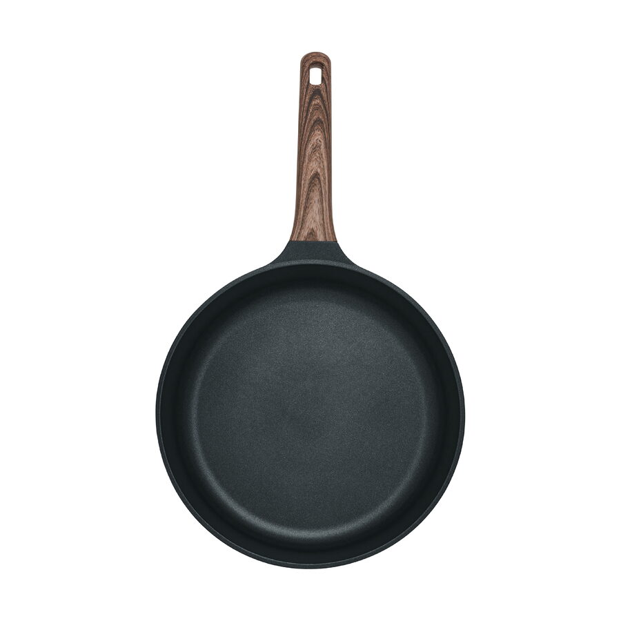 Rukojeti s povrchovou úpravou Soft Touch v designu dřeva nabízejí pohodlný a neklouzavý úchop. Zůstávají chladné na dotek a umožňují bezpečnou manipulaci i při vyšších teplotách. Praktické očko navíc umožňuje snadné zavěšení na háček, takže nádobí nezabírá místo a vaše kuchyně zůstává přehledná.