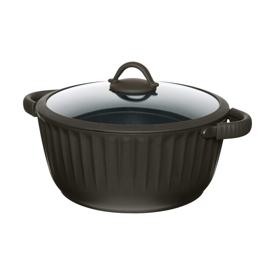 Tlakově litý hliník je ideálním materiálem pro kuchyňské nádobí díky své vynikající tepelné vodivosti a odolnosti. Speciální výrobní proces mu dodává silnější stěny i dno oproti lisovanému nebo kovanému hliníku. Díky tomu se nádobí zahřívá rovnoměrně, udržuje stabilní teplotu a přispívá k lepší kvalitě i chuti připravovaných pokrmů. Je robustnější a těžší než jiné typy hliníkového nádobí a zároveň je odolné vůči deformacím.