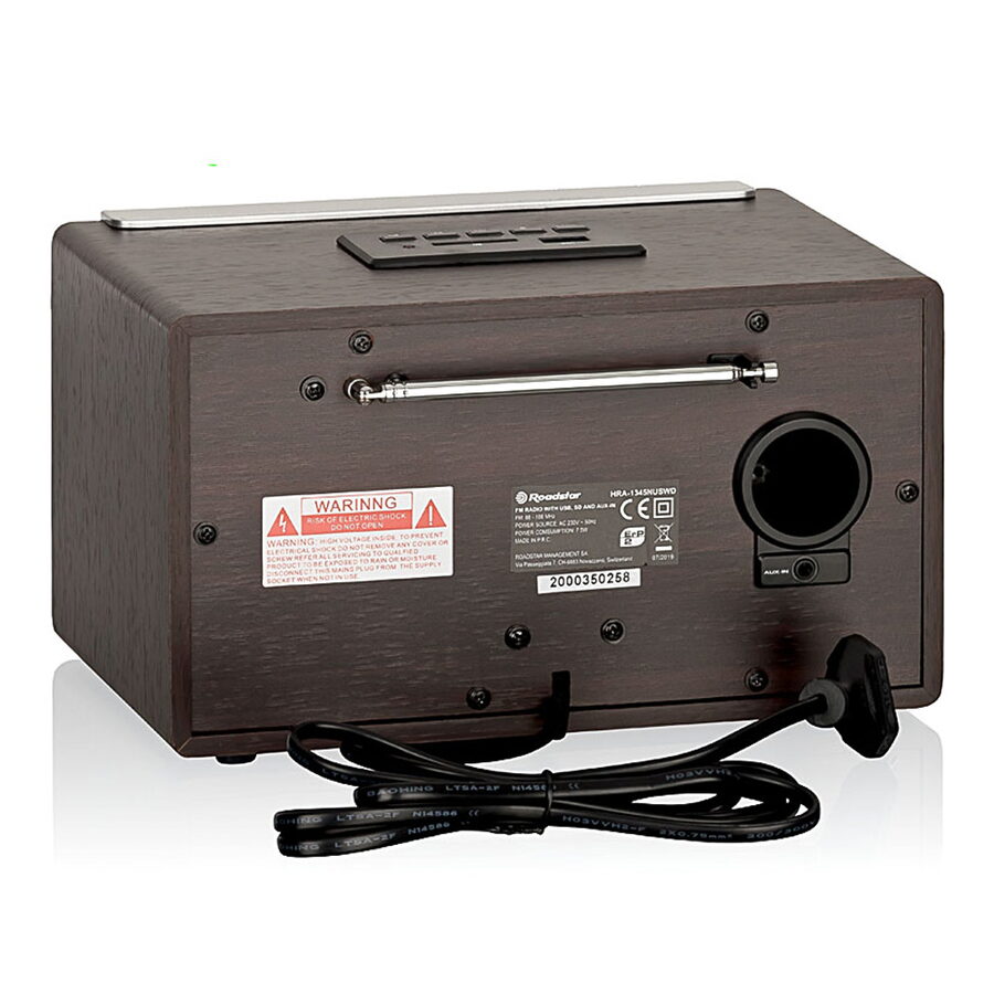 Stylové dřevěné rádio s možností přehrávání MP3 přes USB nebo čtečku karet. Radio analogové AM/FM. Praktický Vstup USB a čtečka karet SD/MMC v horní části přístroje. Napájení: síť 230V/50Hz / baterie. Teleskopická anténa