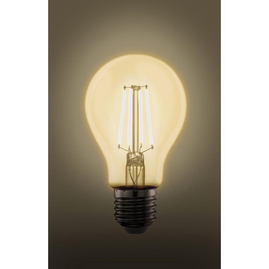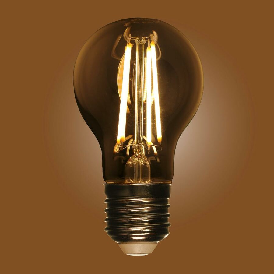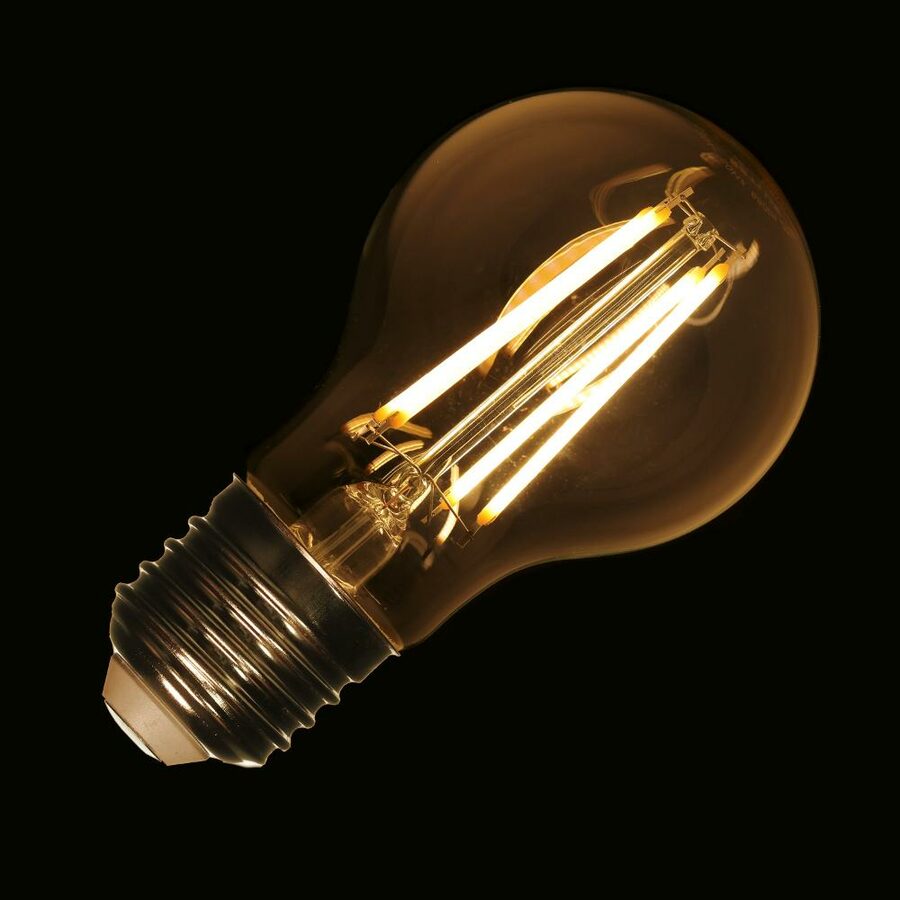 Tato filament žárovka má klasický tvar s paticí E27.