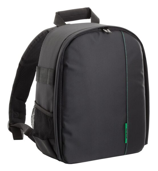 - Stylový batoh s barevnými prvky, kompatibilní s většinou DSLR zrcadlovek;