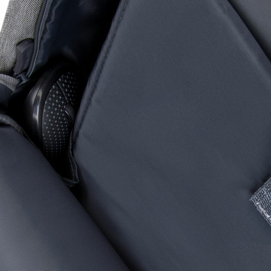 - Připojte přenosnou dobíjecí baterii do portu USB na boku batohu a nabíjejte svá zařízení na cestách.