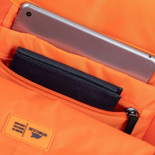 Vnitřek je vyroben z kontrastní oranžové podšívky.