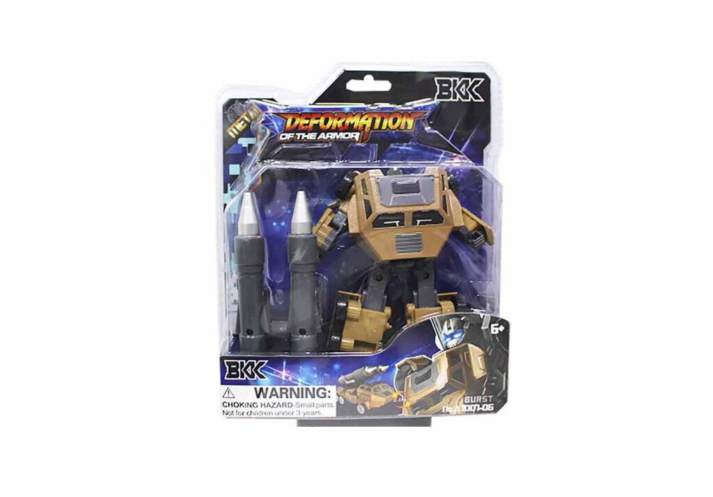 Robot nebo auto? Tento robot se jednoduše přemění v auto a naopak. Uspořádej bitvu robotů nebo bitvu aut! Autíčko má kovovou karoserii s plastovým prvky. 5 druhů (bombardovací/stíhačka/raketové vozidlo/tank/obrněné vozidlo), nasbírej je všechny!