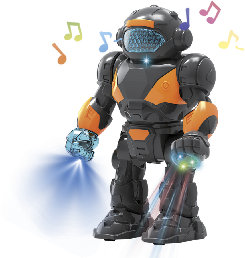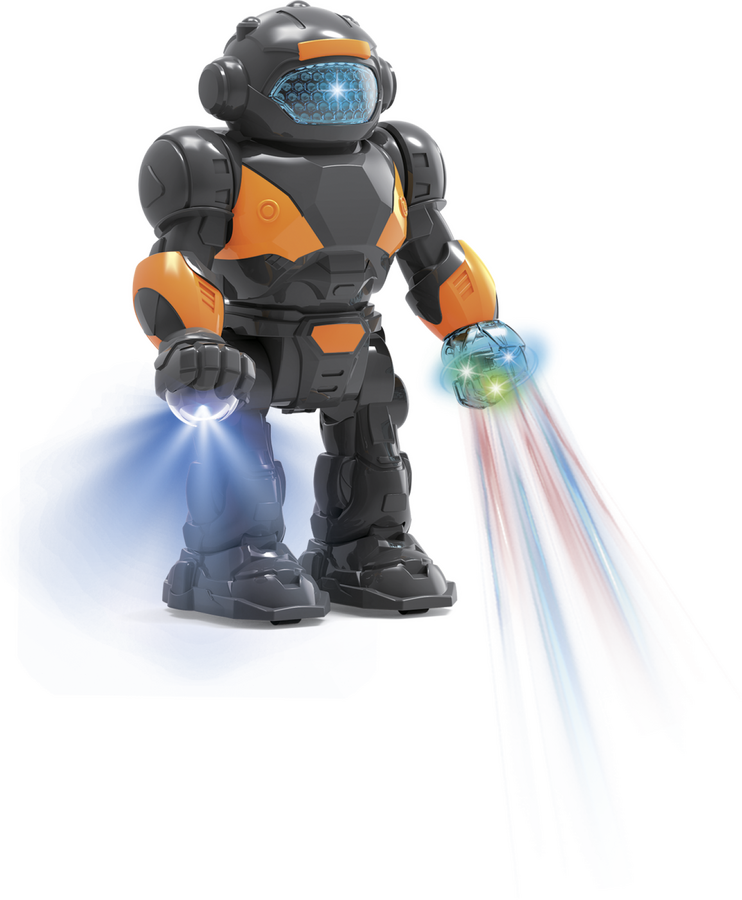 Robot se aktivuje jednoduchým spuštěním a oživí každou hru – ať už bojuje proti vetřelcům nebo hlídá vesmírnou základnu. Ideální pro domácí dobrodružství plné technologií. Tento plastový robot o výšce 22 cm dokáže chodit, svítit a vydávat robotické zvuky.