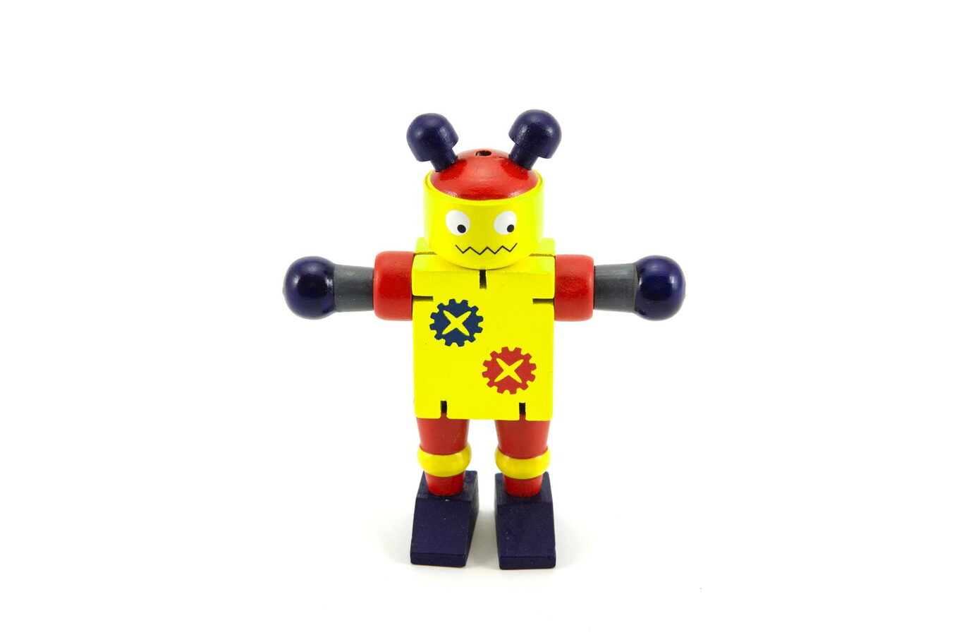 Roztomilý dřevěný robot o velikosti cca 12 cm. Robot má končetiny i hlavu na gumičkách, tudíž je lze snadno přemisťovat a tak robota posadit nebo opět postavit.