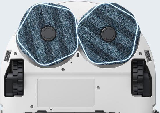 MopMaster 2.0Díky 180 otáčkám za minutu a tlaku 1 kg směrem dolů duální mopovací destičky mopu X10 Pro Omni snadno odstraňují skvrny a zanechávají podlahy, které se lesknou. Při detekci koberce se mopy automaticky zvednou o 12 mm, aby se zabránilo jeho namočení. |