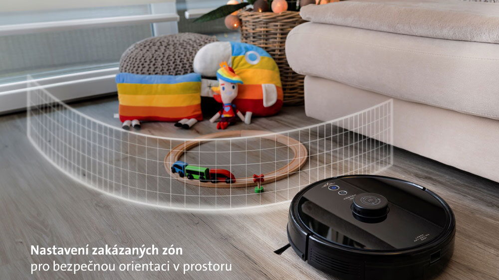- ANTI-COLLISION SYSTEM - senzory pro bezdotykové rozpoznání překážek a šetrný pohyb v místnosti