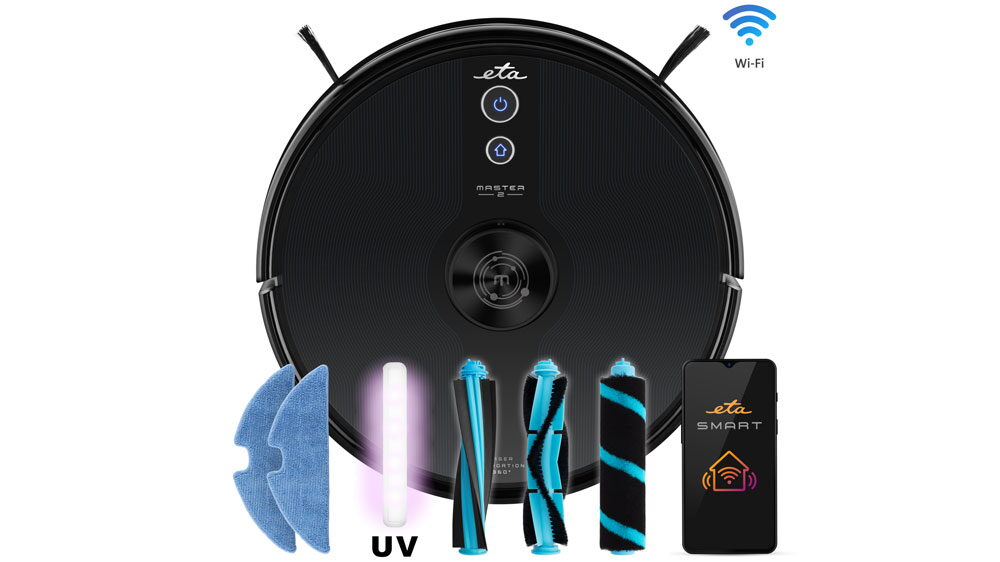 Robotický vysavač ETA Master se nezalekne žádné úklidové výzvy. Na úklid je vybaven několika různými kartáči a mopovacím nástavcem řízeným elektronicky. Navíc má vysavač zabudovanou UV lampu, která povýší úklid zase na vyšší úroveň.
