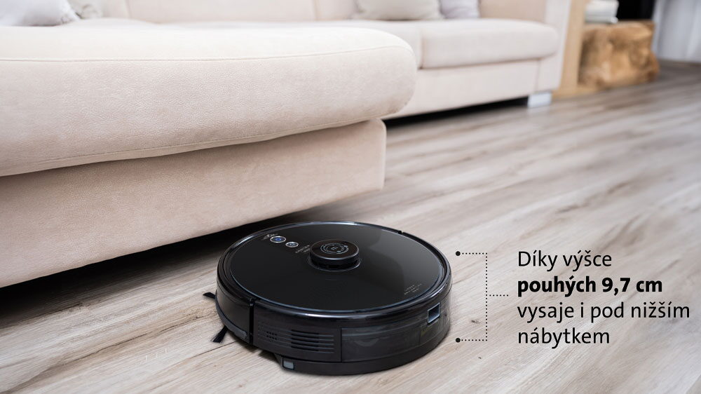 - Výška vysavače 9,7 cm umožňuje vysávání i pod nábytkem