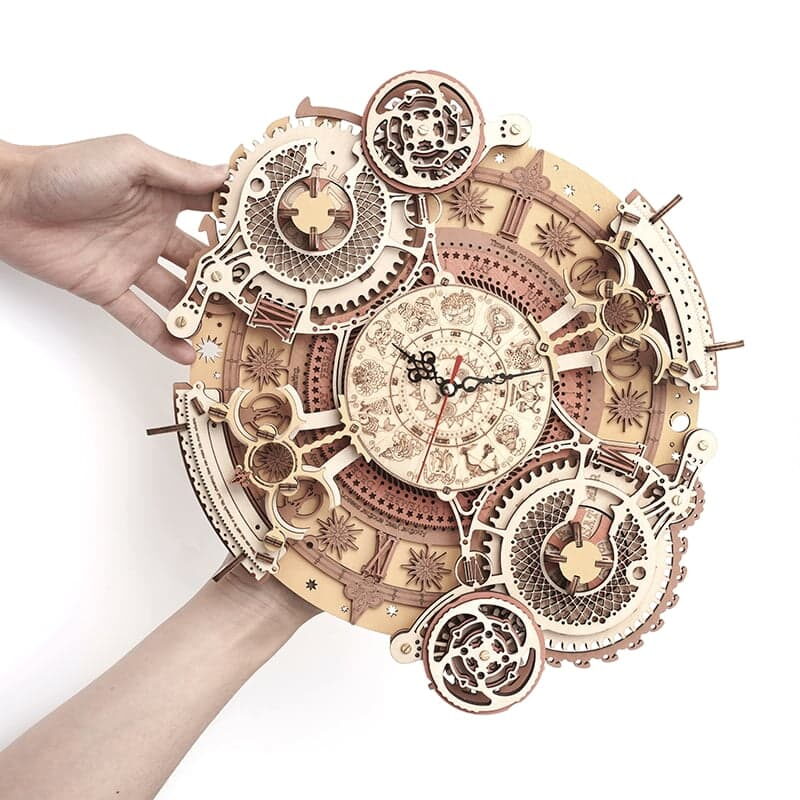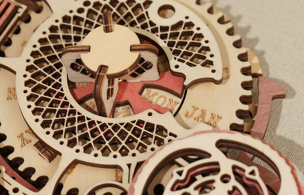 RoboTime 3D dřevěné mechanické puzzle Hodiny s kalendářem