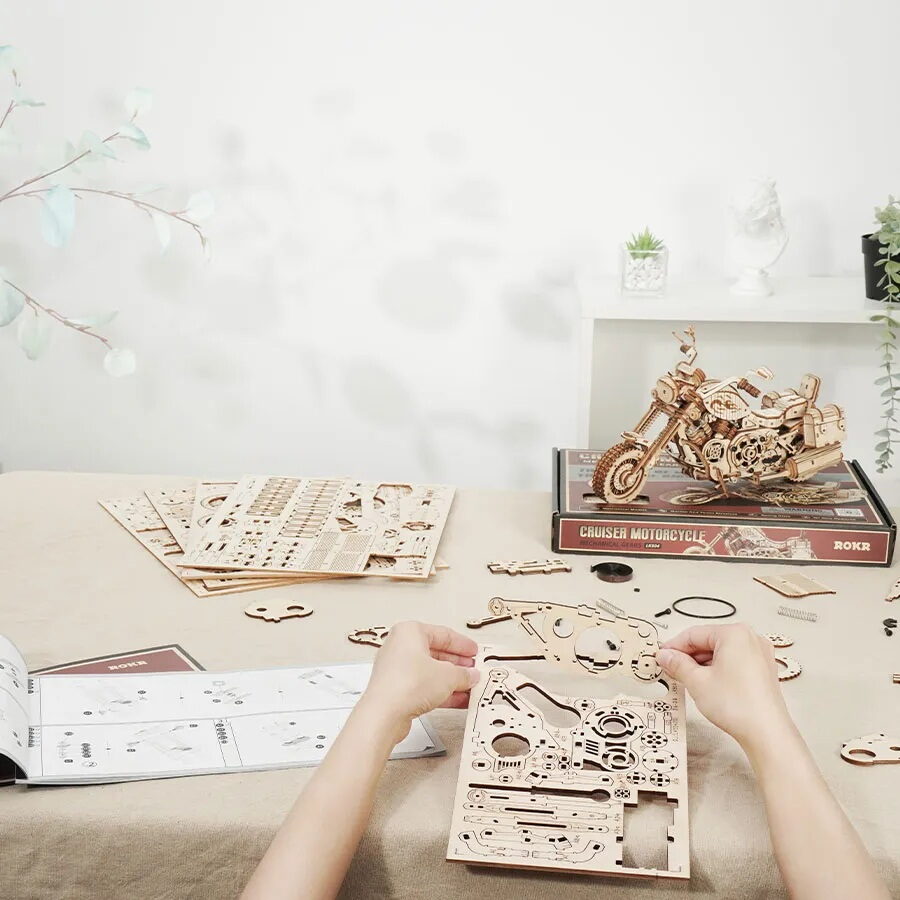 RoboTime 3D dřevěné mechanické puzzle Motorka (cruiser)