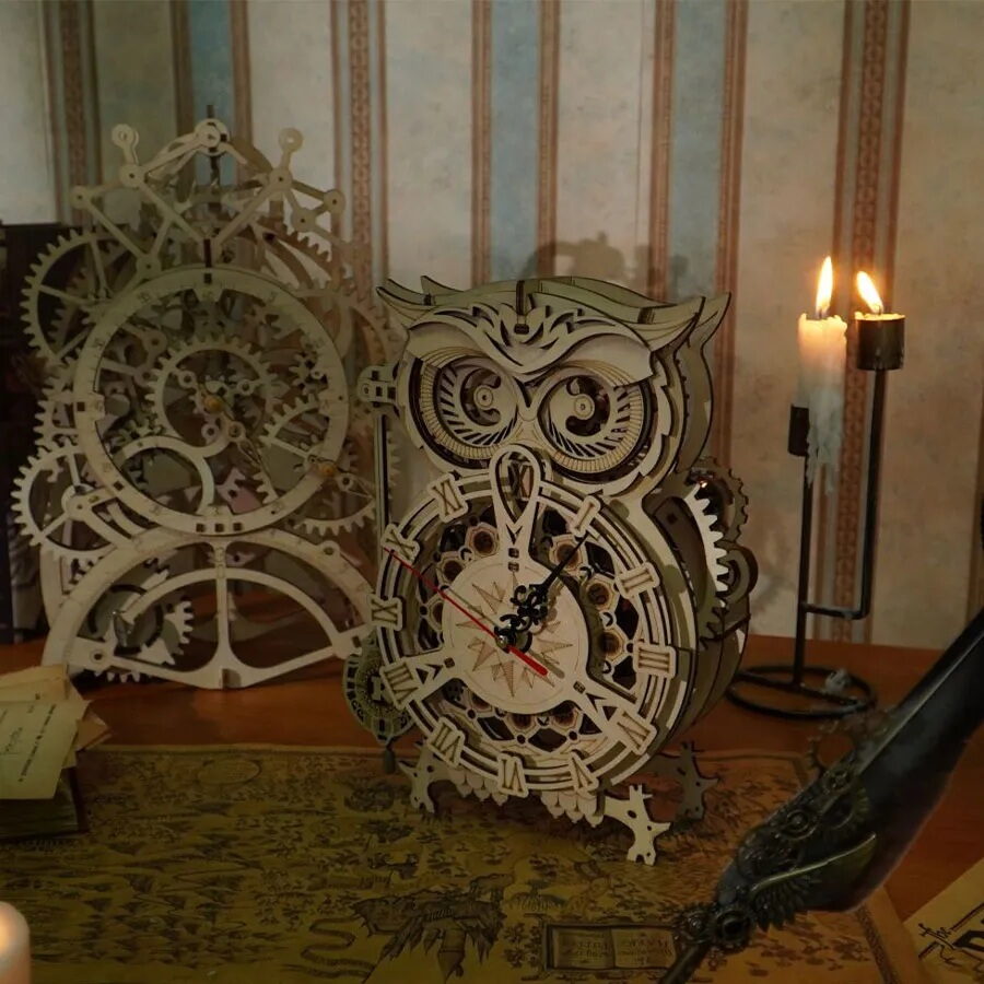 RoboTime 3D dřevěné mechanické puzzle Soví hodiny
