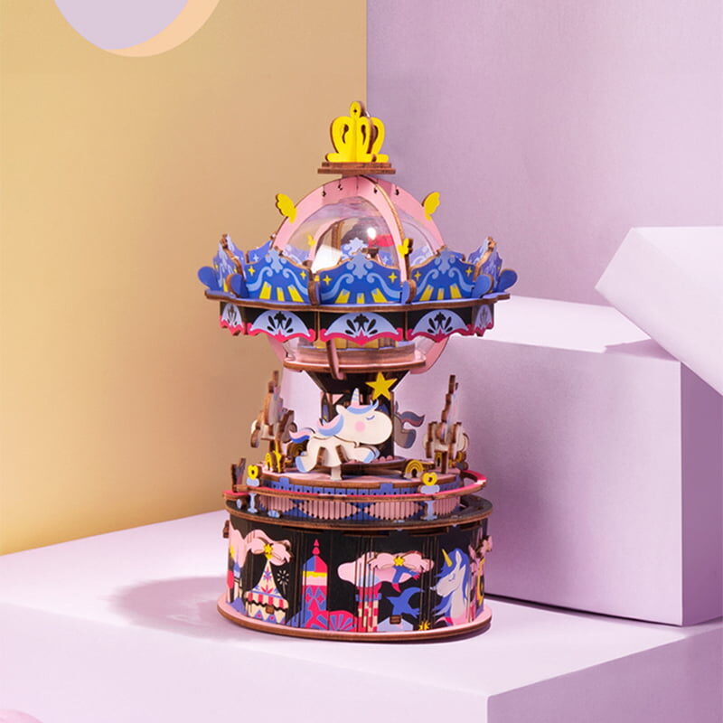 RoboTime 3D dřevěná skládačka hrací skříňky Veselý kolotoč