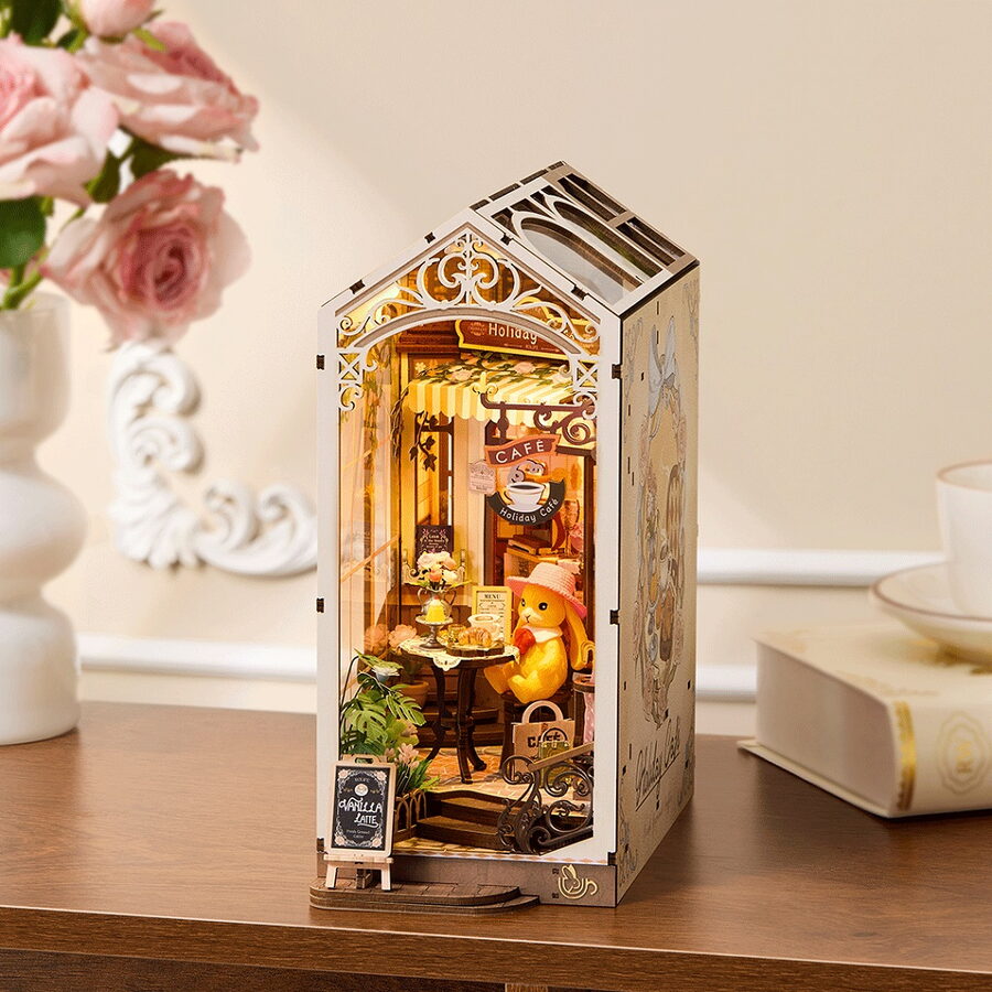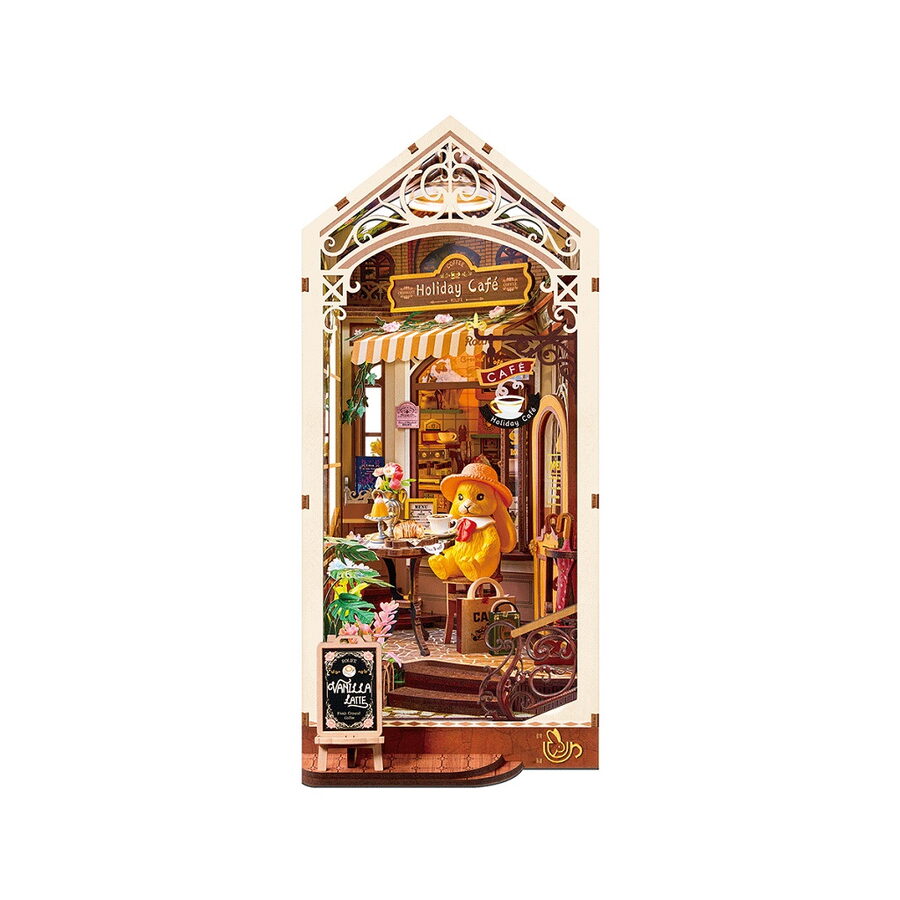 RoboTime 3D skládačka Zarážka na knihy Miniatura domečku Prázdninová kavárna