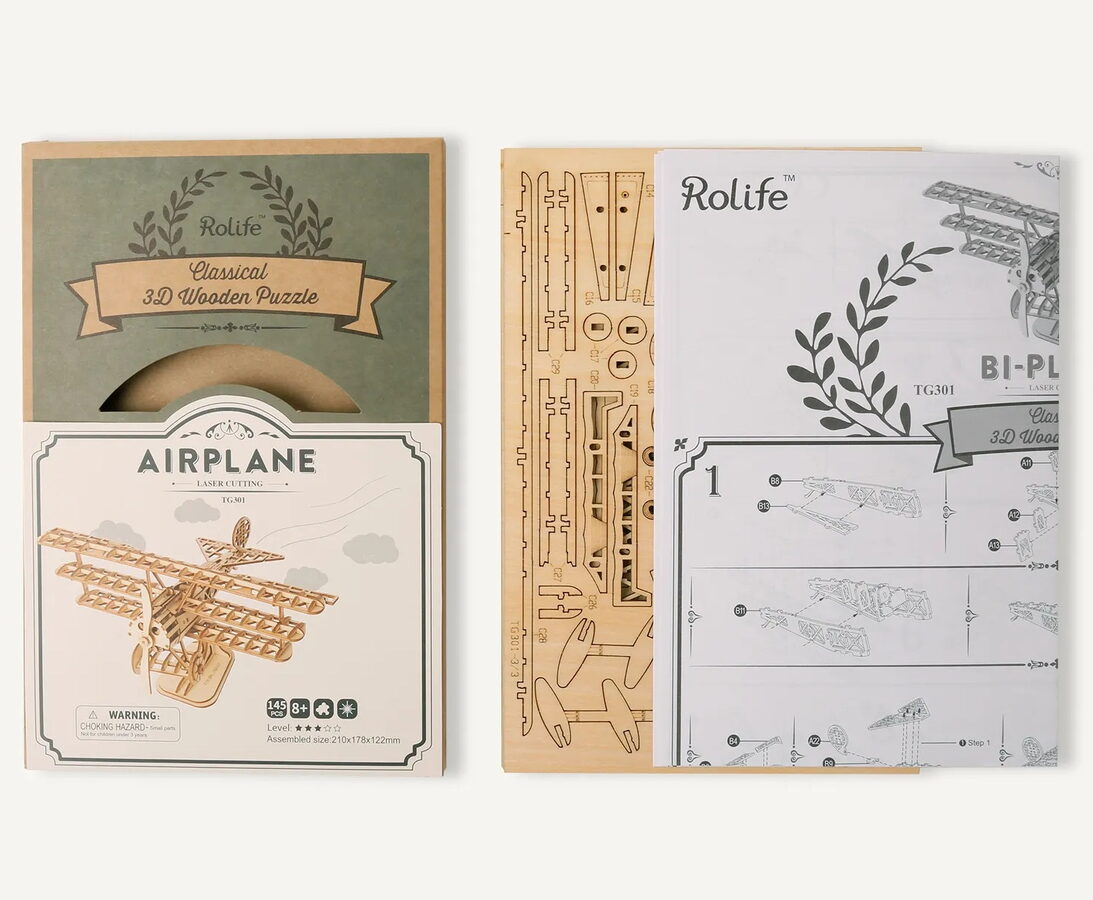 Detailní model vyzbrojeného historického trojplošníku. Patří do řady skládaček, které jsou určeny k vystavení, nejsou interaktivní a nemají žádné pohyblivé díly. Skládačka je dodávána v nesloženém stavu, balena v krabici. Vybaveno detailním návodem k sestavení. Hlavní vlastnosti:145 precizně vyřezaných dílkůnízká obtížnost sestavení