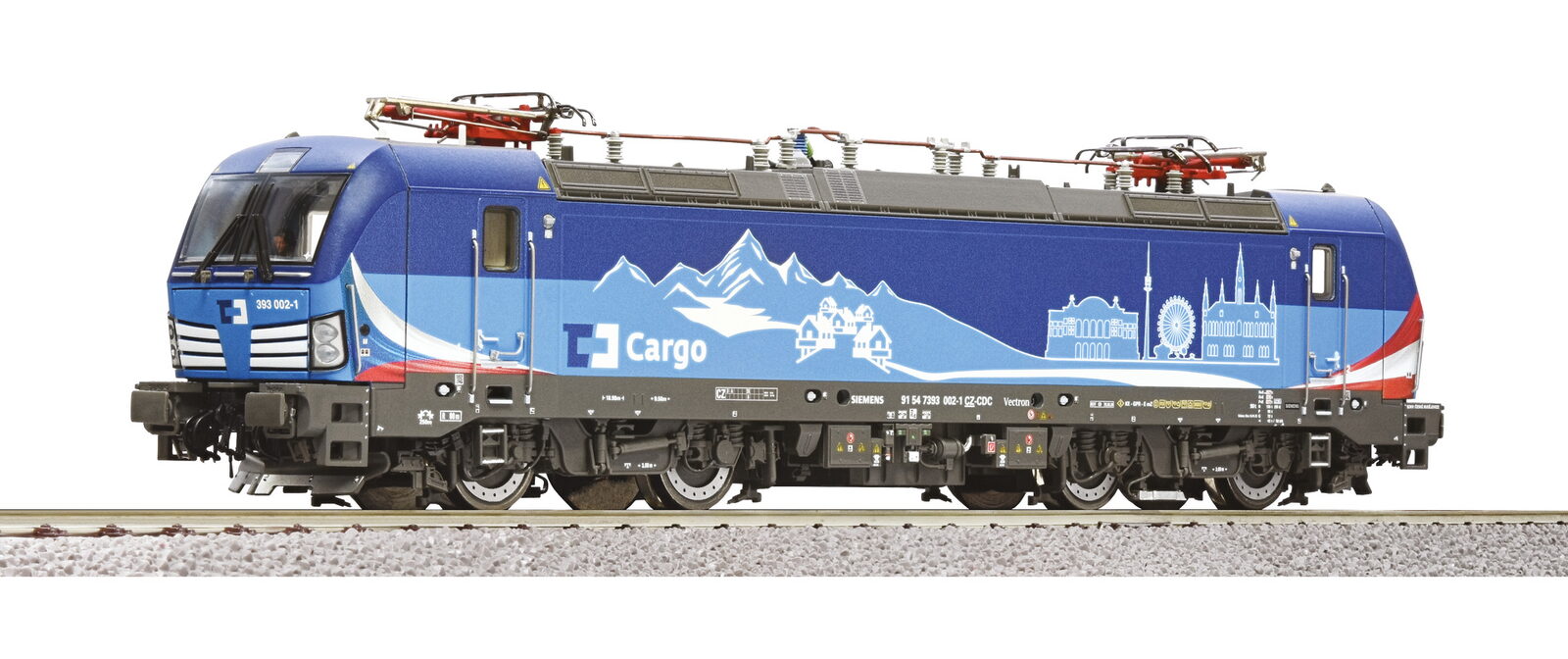 Modelová elektrolokomotiva 393 002-1 ČD Cargo v měřítku H0 představuje moderní dvousystémovou Vectron lokomotivu určenou pro mezinárodní nákladní dopravu. Díky přepracované střeše model nabízí atraktivní a věrný vzhled skutečného předobrazu. Volně stojící madla, některá z nich kovová, přispívají k vysokému stupni detailu. Model je vybaven přepínatelným předním a zadním osvětlením pomocí DIP přepínače, které umožňuje realistické provozní efekty. Předlohou je moderní elektrická lokomotiva řady 393 nasazená u ČD Cargo, která byla dodána od března 2023 se dvěma stroji vybavenými pomocným dieselovým modulem (DPM). Tyto dvousystémové lokomotivy mohou jezdit jak na 15 kV (16 2/3 Hz), tak na 25 kV (50 Hz) střídavém proudu a slouží nejen v Česku, ale i v dalších evropských zemích včetně Slovenska, Rakouska, Německa a Maďarska. Specifikace: Typ spojky: NEM 362 s KK-kinematikouMinimální rádius: 358 mmSetrvačník: AnoPočet hnaných náprav: 4Počet náprav s bandážemi: 1Měřítko: H0Epocha: VIŽelezniční společnost: ČD CargoOsvětlení: 3 přední světla / 2 zadní světla, řízené podle směru jízdyLED osvětlení: AnoDalší světelná funkce: AnoNapájení: DC analogRozhraní: Elektrická rozhraní PluX22Délka přes nárazníky: 218 mm Hlavní vlastnosti: model věrně zpracovává moderní dvousystémovou Vectron lokomotivupřepracovaná střecha a volně stojící madla pro vysoký stupeň detailupřepínatelné přední a zadní osvětlení s DIP přepínačemurčeno pro mezinárodní nákladní dopravusměrově řízené LED osvětleníflywheel (setrvačník) pro plynulý chodstandardní PluX22 rozhraní pro případnou digitalizacivhodné pro provoz na DC analog systémech Dokumentace: návod k obsluze (DE, EN, F)seznam náhradních dílů (DE, EN, F)