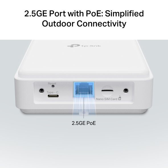 - Rozhraní: 1× 2,5GbE PoE/LAN port, 1× Nano SIM slot, 1× USB-C (debug)