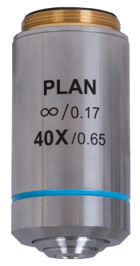Rovinný achromatický objektiv s korekcí na nekonečno MED 40x umožňuje 40násobné přiblížení. Je určen pro mikroskopy s nekonečnou korekcí. Skleněná optika eliminuje chromatické aberace a výrazně zplošťuje zorné pole. Hlavním rysem je větší počet optických elementů, díky kterým jsou přenášené obrazy ostřejší. Při laboratorním studiu je vyžadován vysoce kvalitní obraz. Optika objektivu je uložena v kovové konstrukci; přední čočka je vybavena pružinovým rámečkem.