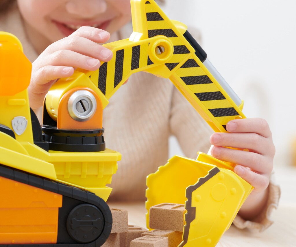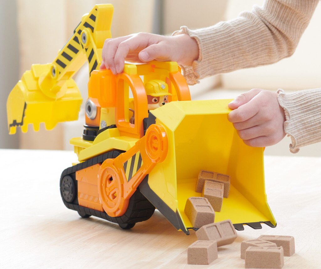 Vytvořte jeden tým spolu se svým oblíbeným pejskem z Tlapkové patroly Rubblem a jeho Buldozerem Bark Yard Deluxe! Tato tlapkózní stavebnice obsahuje opravdová funkční kola, dva kloubové nástroje a působivé světelné a zvukové efekty, které z ní dělají nutnost pro všechny fanoušky seriálu Rubble a jeho parta! Tato úžasná figurka a sada vozidel obsahuje figurku Rubbla, která měří 5 cm na výšku a je oblečená v oficiální uniformě Rubbla a jeho party, takže vypadá přesně jako v seriálu. Když přijde čas dát se do práce, posaďte Wheelera na sedadlo řidiče a zatlačte, čímž spustíte působivé světelné efekty a zvuky ze seriálu! Použijte kloubový bagr a začněte kopat a poté odsuňte hlínu z cesty pomocí pohyblivé lžíce, stejně jako to dělá Rubble! Ještě více zábavy ze světa Rubbla a jeho party vám zajistí stavební náklaďák, figurky, sady s kinetickým pískem Build-it nebo sada s jeřábem spolu se sadou Rubblova dílna, které vám umožní vybudovat vlastní staveniště přímo u vás doma (prodávají se zvlášť)! Přiveďte seriál Rubble a jeho parta k životu pomocí Rubblova buldozeru Bark Yard Deluxe!