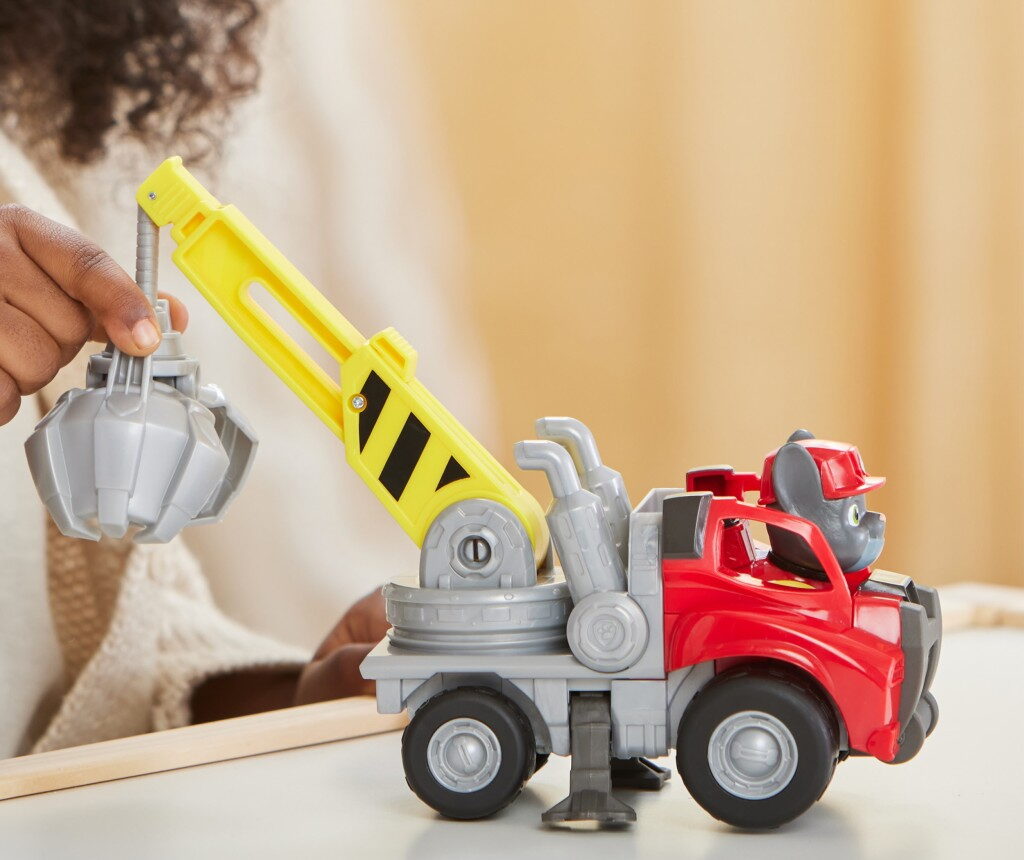 Charger je připraven to „drapnout, zvednout a přesunout“ ve svém zbrusu novém Jeřábu s drapákem Rubble a jeho parta! Tento jeřáb s opravdovými funkčními koly, výsuvným jeřábem a funkčním drapákem je nutností pro všechny fanoušky seriálu Tlapková patrola, kteří milují stavění a budování! Děti si zamilují hru se svými oblíbenými štěňátky, při níž zapojí fantazii a spojí síly se svými rodiči, aby společně uskutečnili stavební projekty ze seriálu a poté je rozšířili o vlastní nápady! Pro ještě větší zábavu se stavebními hračkami zkuste posbírat všechny stavební vozidla Rubble a jeho parta, plyšové hračky a herní sady s figurkami a kinetickým pískem Build-It (prodávají se zvlášť)! Zažijte non-stop stavební dobrodružství se všemi svými oblíbenými štěňaty! Senzorické a hračky a stavebnice Rubble a jeho parta jsou navrženy tak, aby poskytly dětem a rodičům příležitost stavět, hrát si a učit se společně! Tyto figurky a hračky jsou fantastickým dárkem pro děti, které milují stavění a které ještě stále rozvíjejí své jemné motorické dovednosti a představivost! Přiveďte seriál Rubble a jeho parta k životu pomocí Chargerova jeřábu s drapákem!