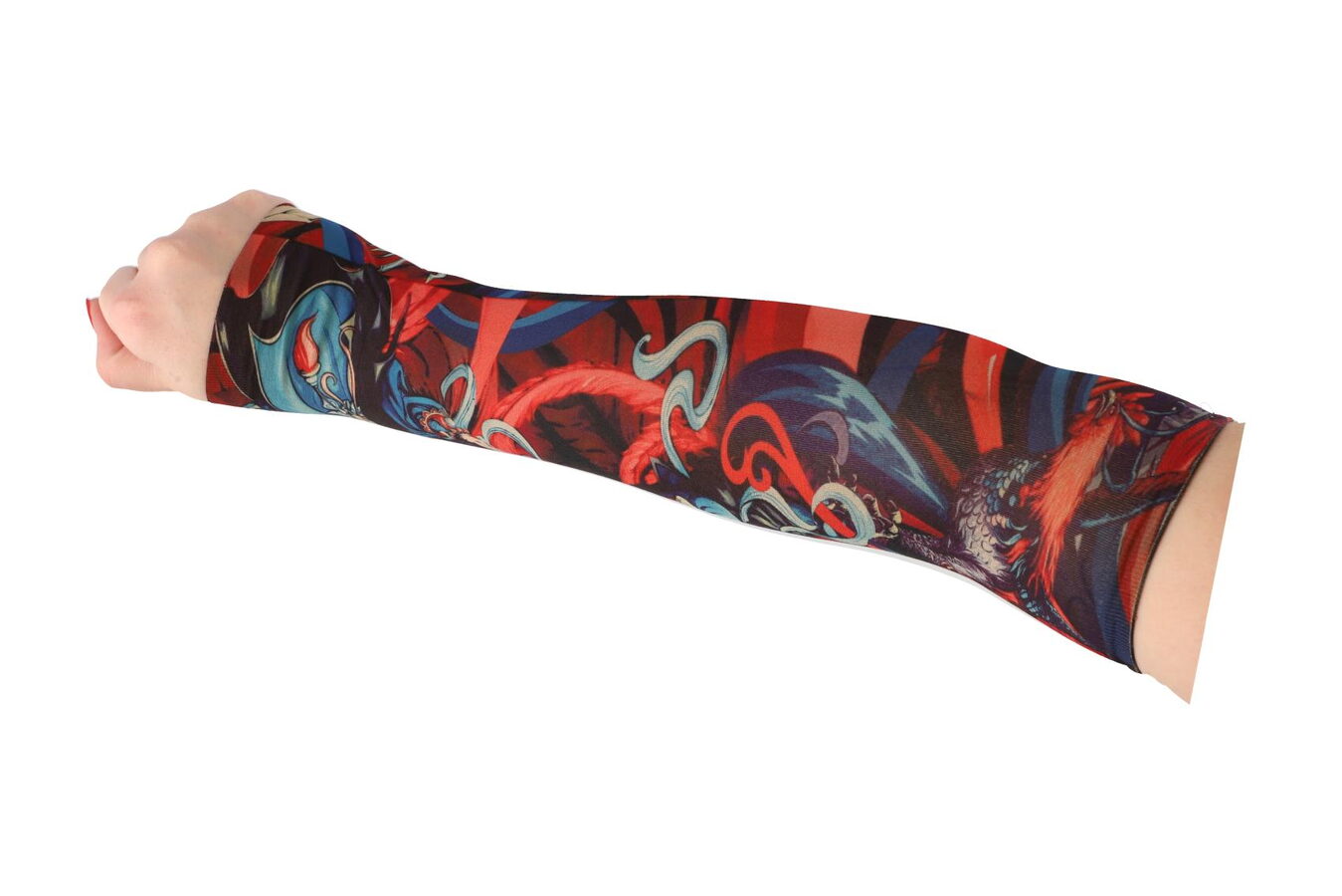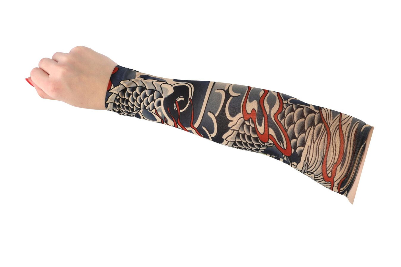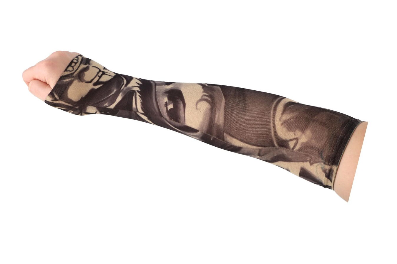 Tetovací rukáv z elastické látky je skvělým doplňkem pro každého, kdo chce vyzkoušet vzhled tetování bez trvalého závazku. Realistické motivy působí jako skutečné tetování a rukáv pohodlně zakryje celé předloktí.