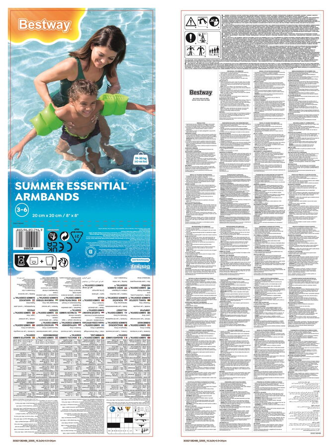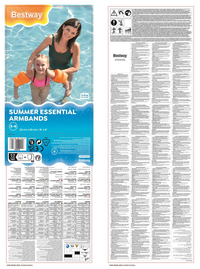 Nafukovací rukávky jednobarevné pro děti od 3 do 6 let o velikosti 20×20 cm.
