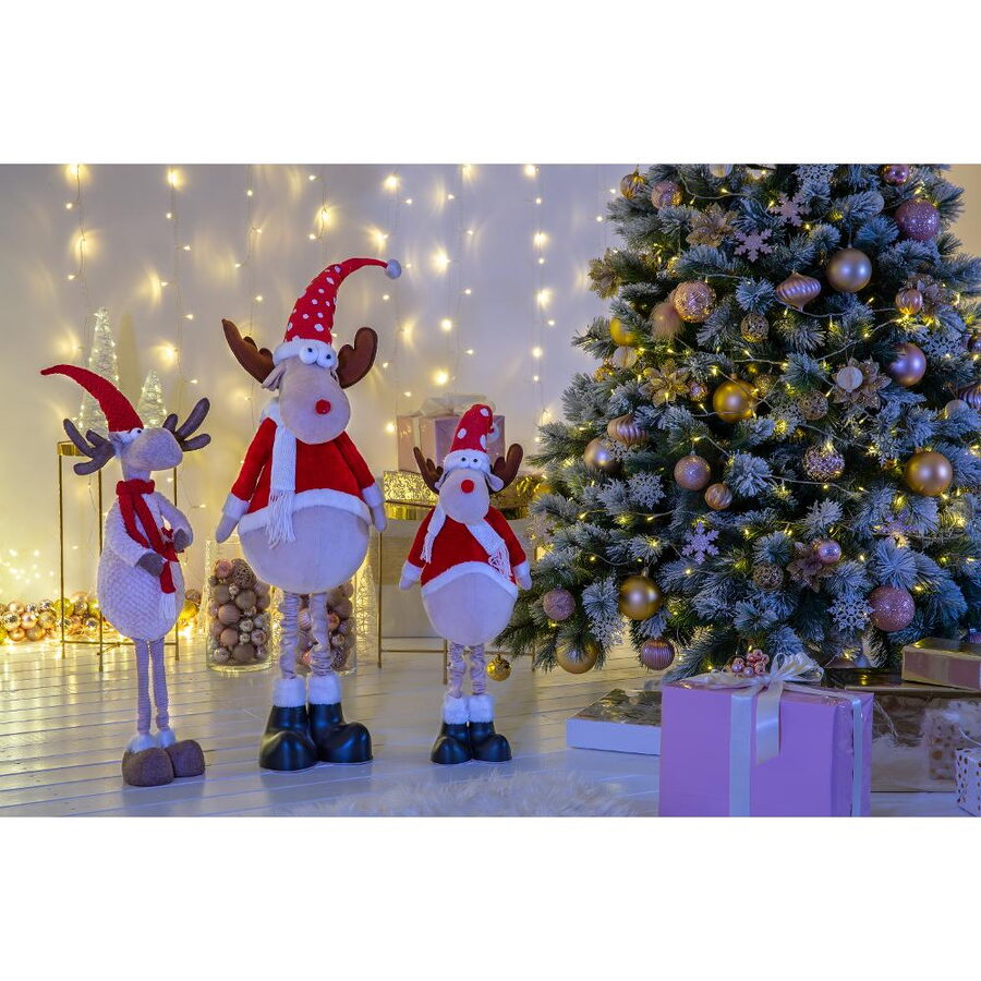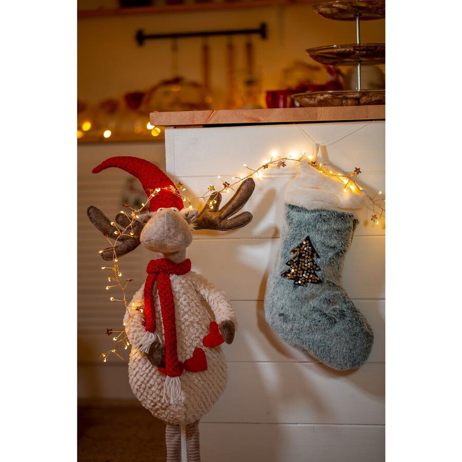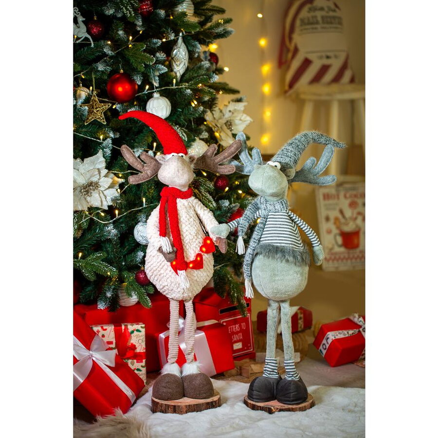 Plyšový sob s LED osvětlením Výška 91 cm Počet LED: 6 Barva světla: teplá bílá Svítící srdíčka, bílé doplňky