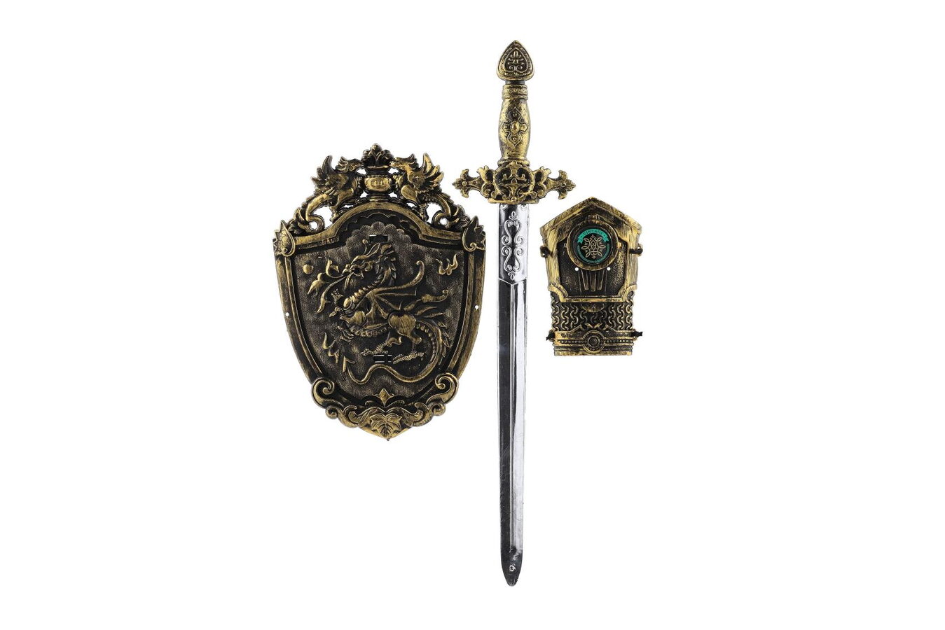 Staň se statečným rytířem a vydej se do boje se zlem! Tato rytířská sada obsahuje vše, co malý hrdina potřebuje – plastový meč, chránič na ruku a štít. Skvělý doplněk ke kostýmu na karneval, pro dobrodružnou hru doma i na zahradě.