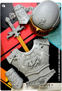 Rytířská sada se stříbrným mečem, zbrojí a helmou