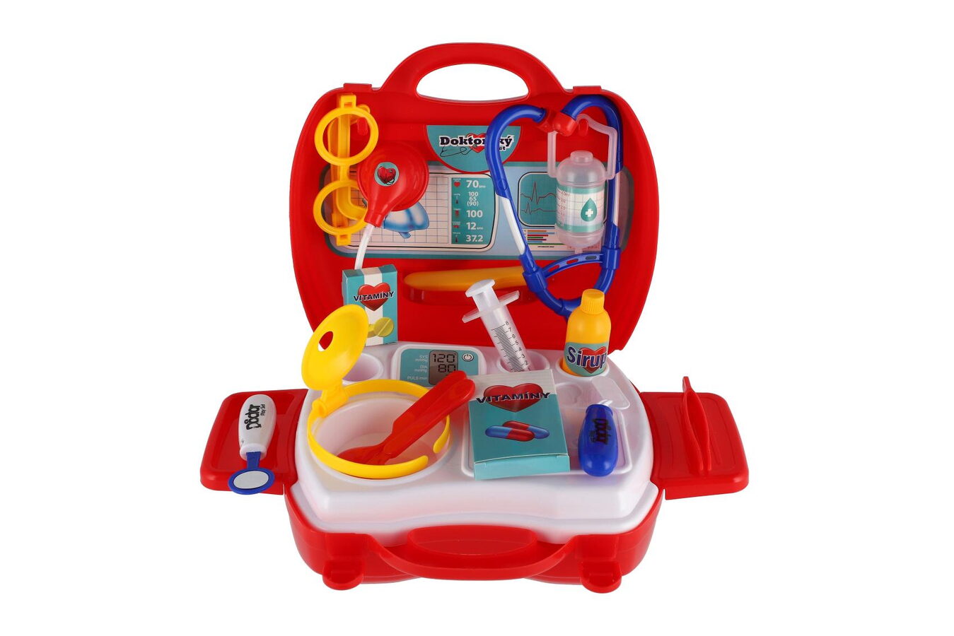 Sada obsahuje vše, co malý lékař potřebuje k ošetření pacientů. Všechny potřebné nástroje jsou uloženy v praktickém kufříku s madlem.