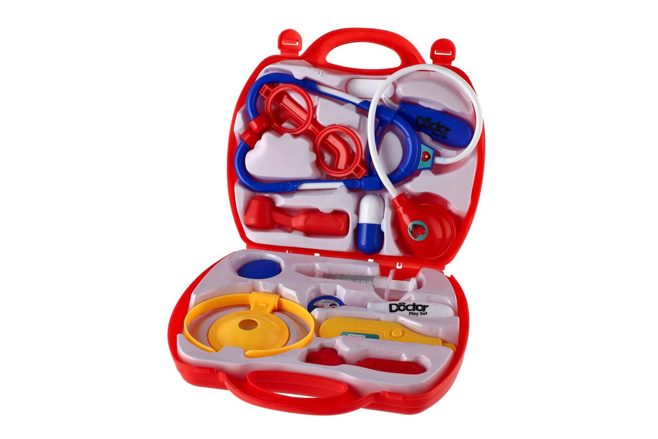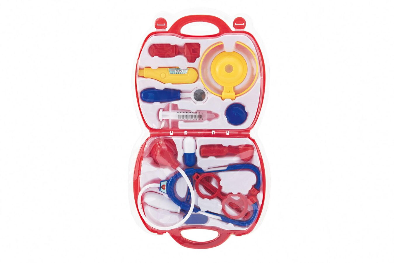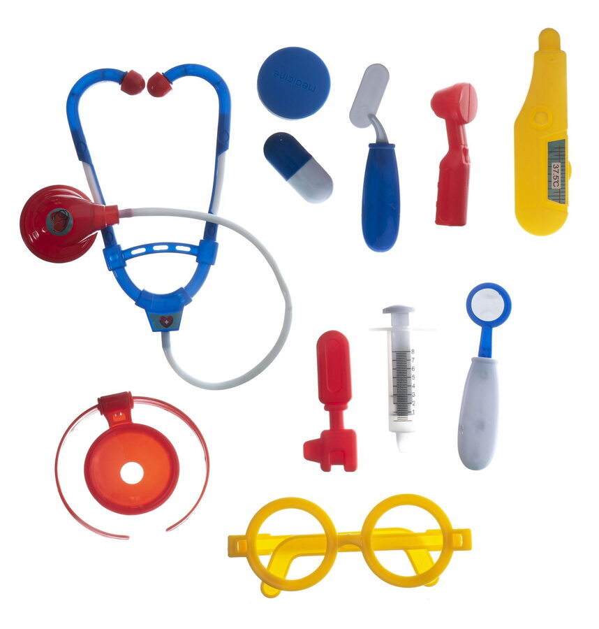 Sada obsahuje vše, co malý lékař potřebuje k ošetření pacientů. Všechny potřebné nástroje jsou uloženy v praktickém kufříku s madlem.