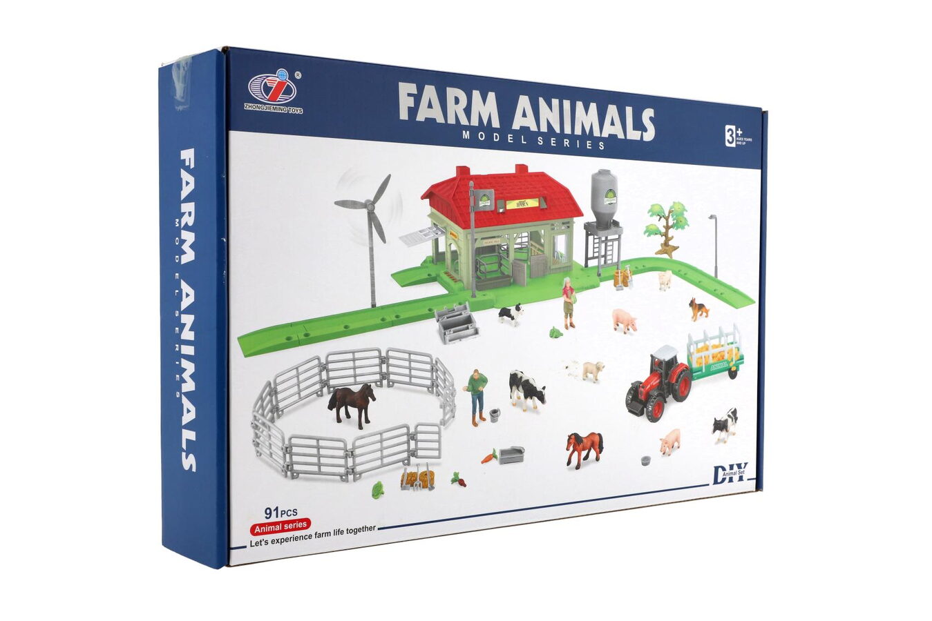 Sada domácí farma se zvířaty a traktorem plast s doplňky v krabici 48x31x9cm