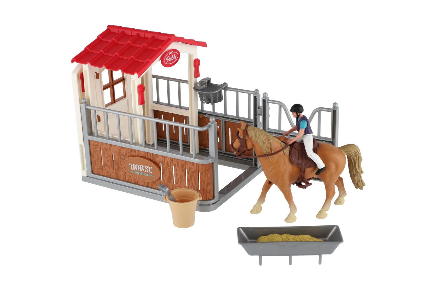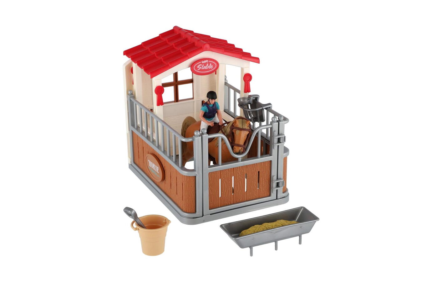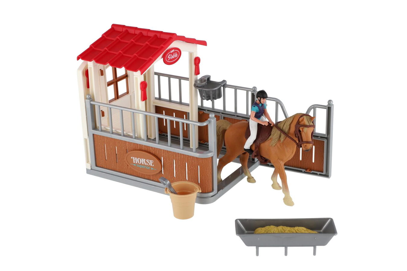 Krásná sada nejen pro malé farmáře a milovníky koní, ale také fajn doplněk do každého pokojíčku. Snadno postavíte stáj pro koníka a díky doplňkům v sadě se dokáže o svého mazlíčka skvěle postarat.